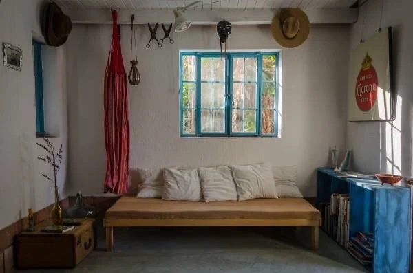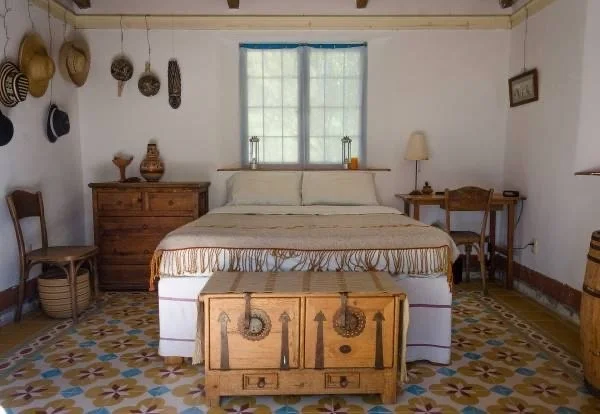 Inside: patterned tiles cool beneath bare feet. Hats hanging on white walls like old friends. The sleeping loft where afternoon rain drummed overhead until the storms passed and everything glistened.