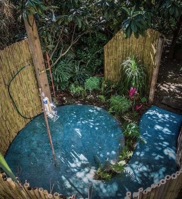 Morning shower in the banana grove. Bamboo screens, turquoise tiles, cool water falling while the warm breeze drifted through. The distant ding-a-ding of a bicycle, donkeys braying somewhere down the dirt road.